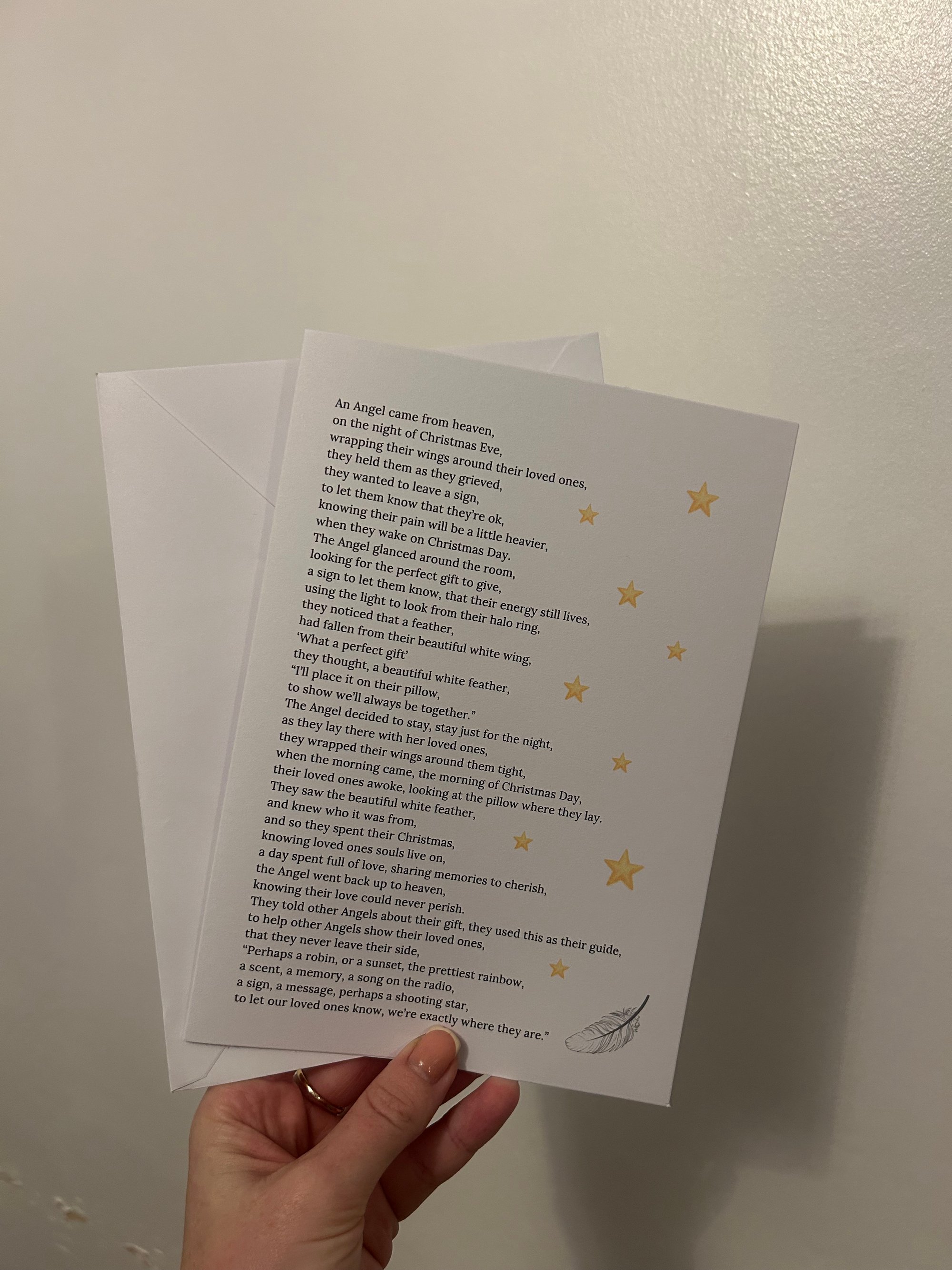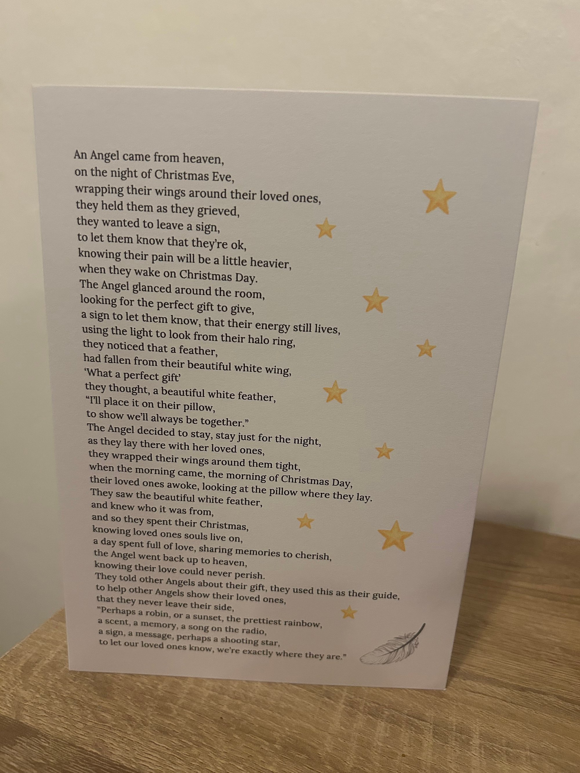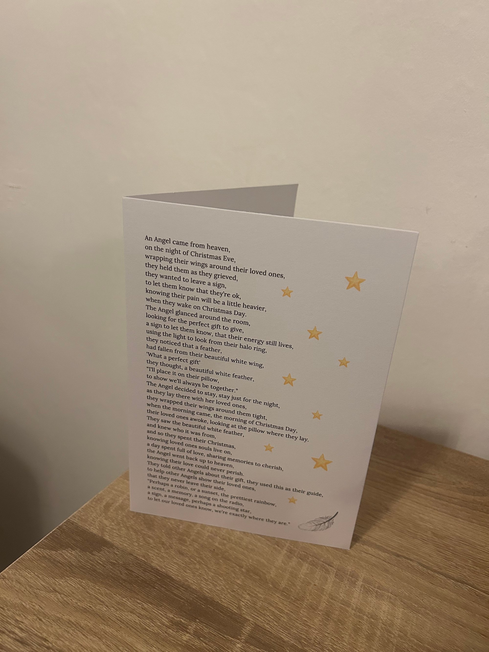 Printed on A4 or 5’7 300gsm card or a free standing card that is blank on the inside.