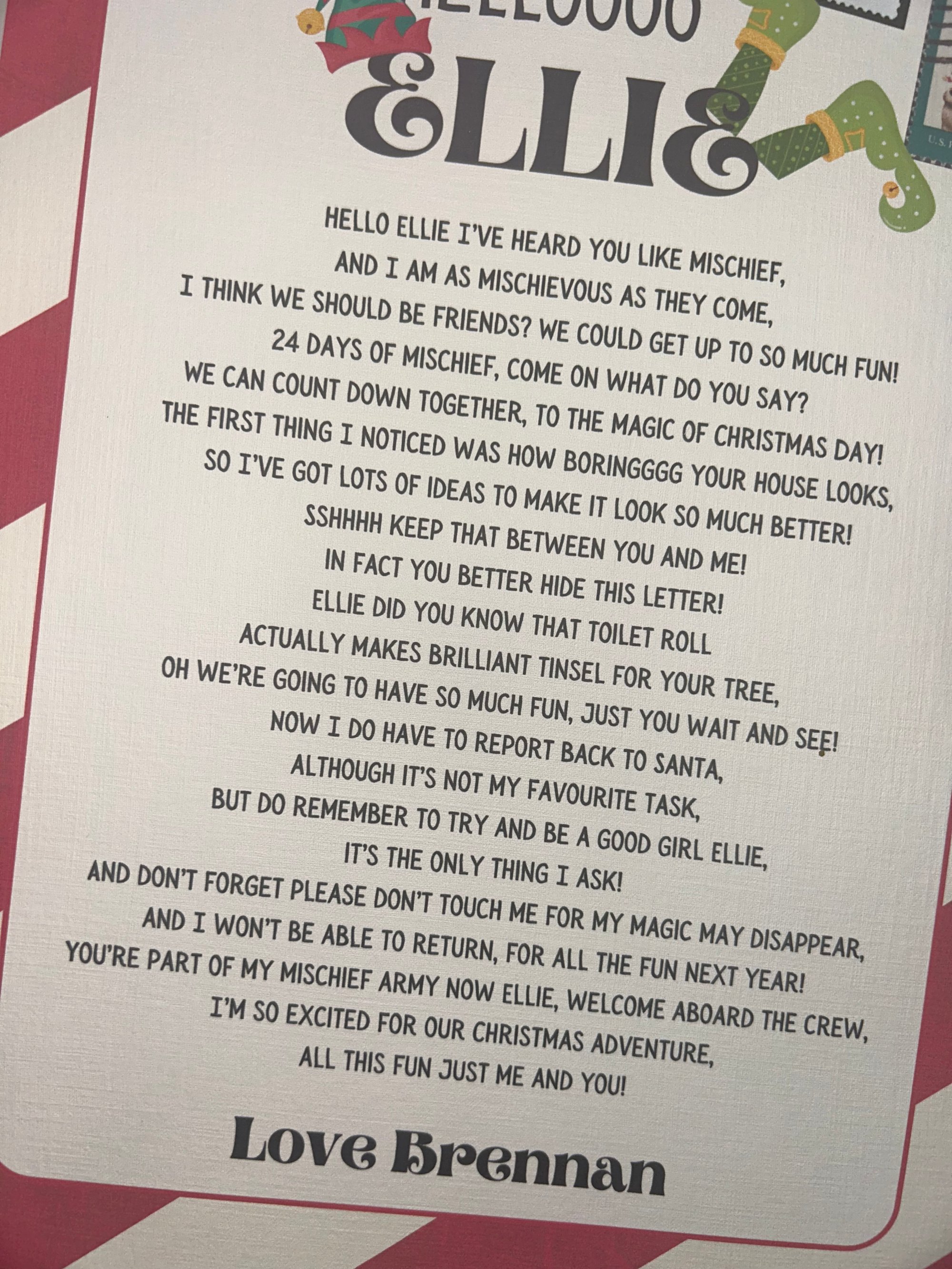Elf on a shelf rhyming letter/card