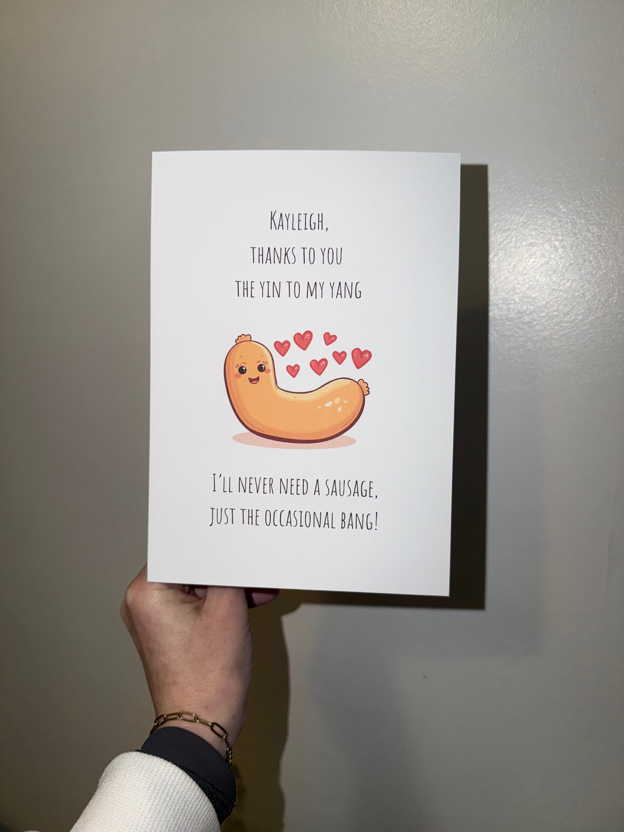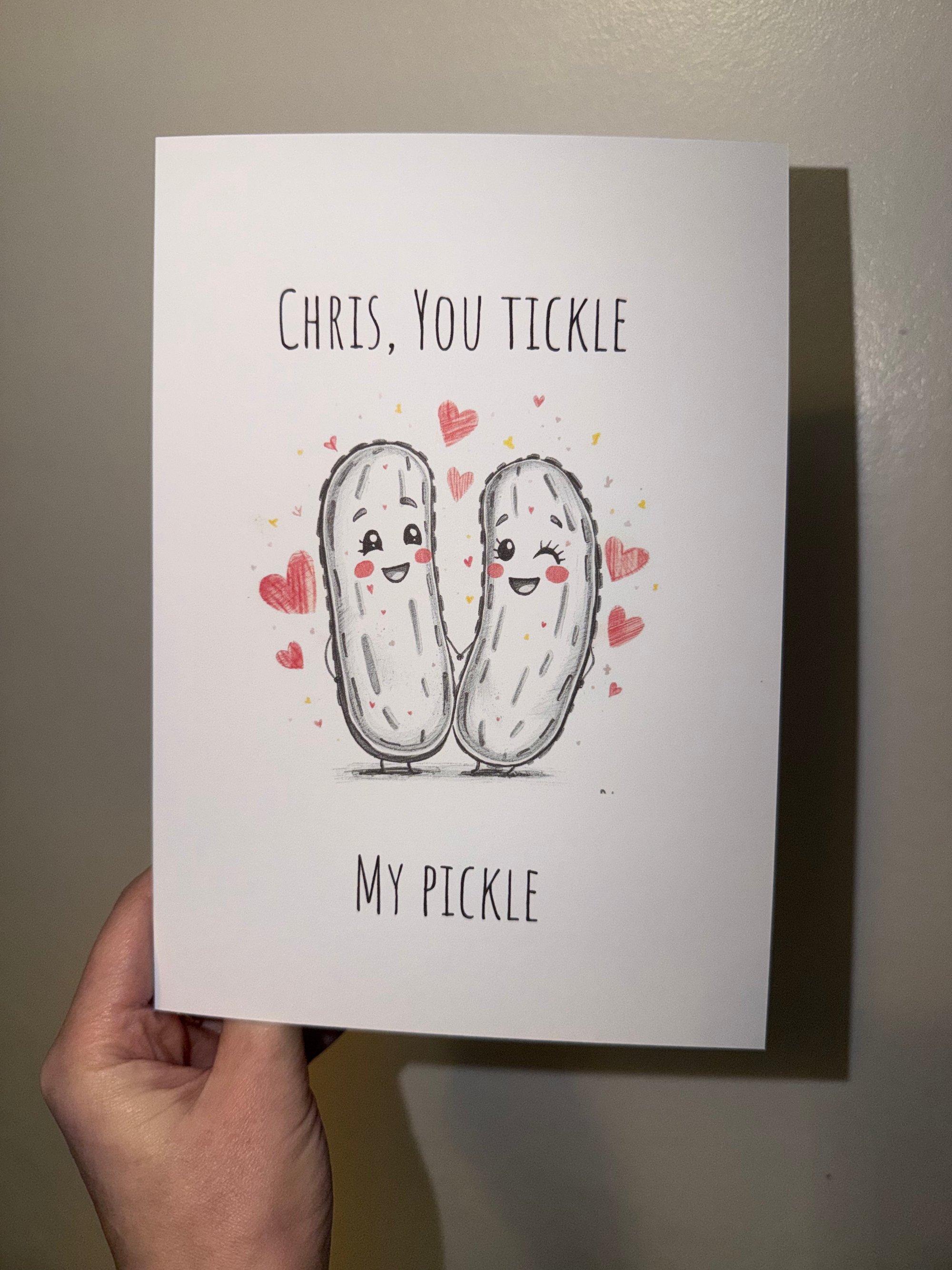 Send the perfect pun this Valentines/ Galentines day with a personalised card. Printed on a5 free standing 300gsm quality card complete with an envelope.